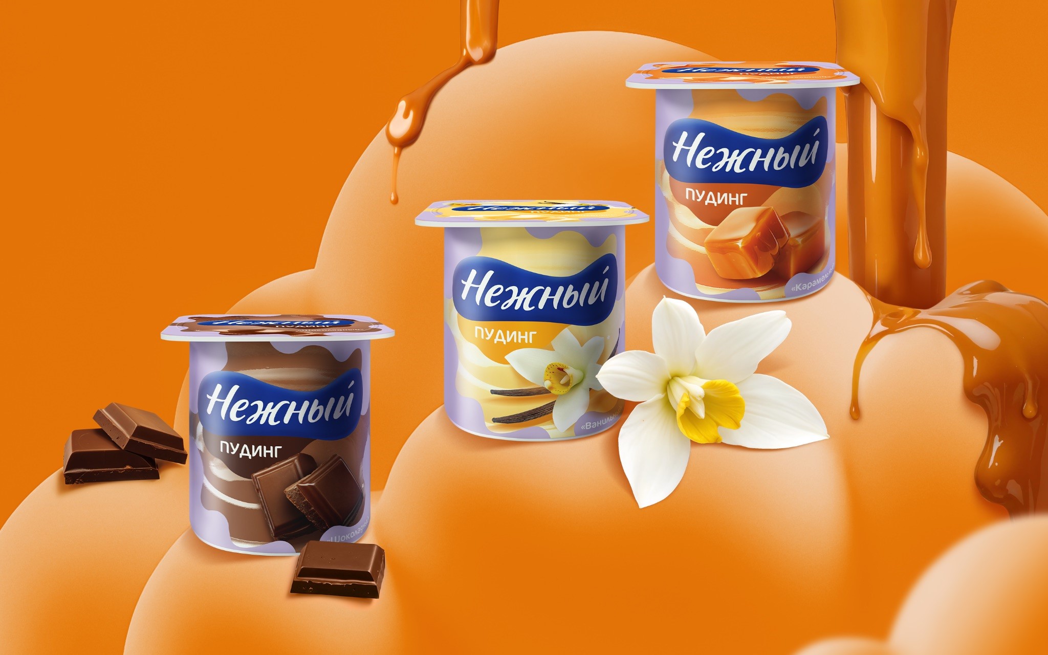 Geek создали товарный брендинг и разработали дизайн упаковки для новой линейки пудингов "Нежный" от Ehrmann