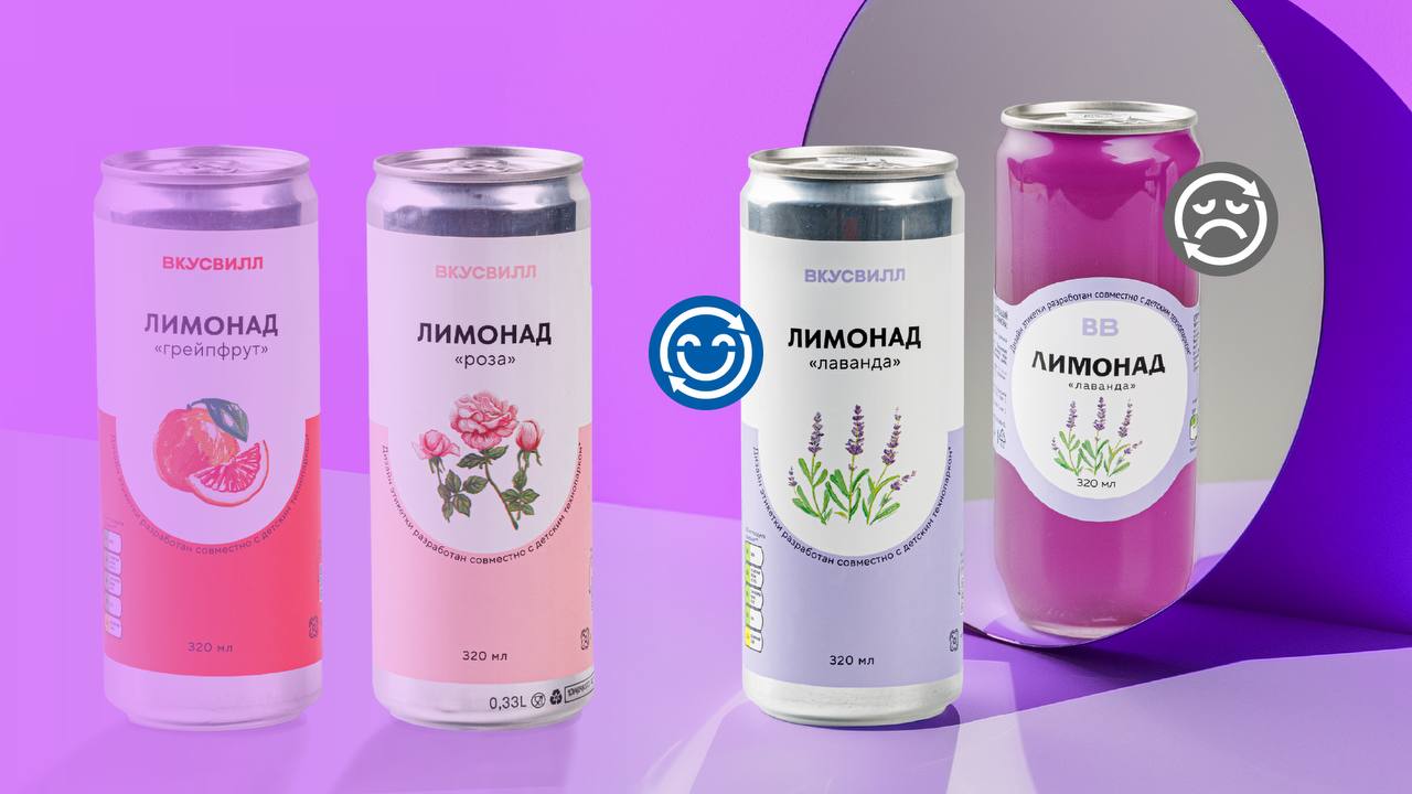 Во ВкусВилле продаются лимонады со вкусом мандарина, лаванды, грейпфрута, розы. При разработке этих напитков основной идеей стало использование натуральных компонентов, которые подчеркнули прозрачной упаковкой. Но к минусам относится сложность утилизации такой упаковки — комбинированные материалы затрудняют разделение и сортировку отходов. Поэтому производитель перешел на розлив лимонада в алюминиевую банку.