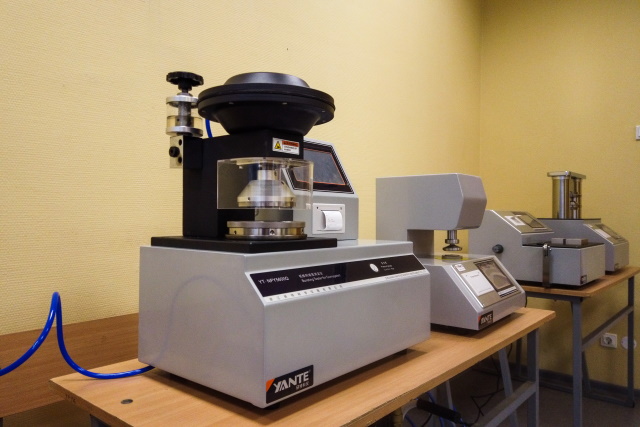 Лаборатория оснащена гофрировальной машиной, прибором для определения сопротивлению продавливания картона, прибором для измерения внутренней межслоевой прочности, принадлежностями для испытания прочности адгезии, прессом для испытания коробов на сжатие, резаком для образцов, прибором для определения жесткости бумаги при изгибе, прибором для определения сопротивления сжатию на коротком расстоянии, прибором для испытания на сжатие, автоматическим измерителем гладкости по методу Бекка, резаком для отбора проб по методу RCT, набором принадлежностей для испытаний по методу RCT, резаком для отбора образцов при испытании на жесткость, галогенным влагомером для бумаги, электронным толщиномером для бумаги, электронным прибором Эльмендорфа.