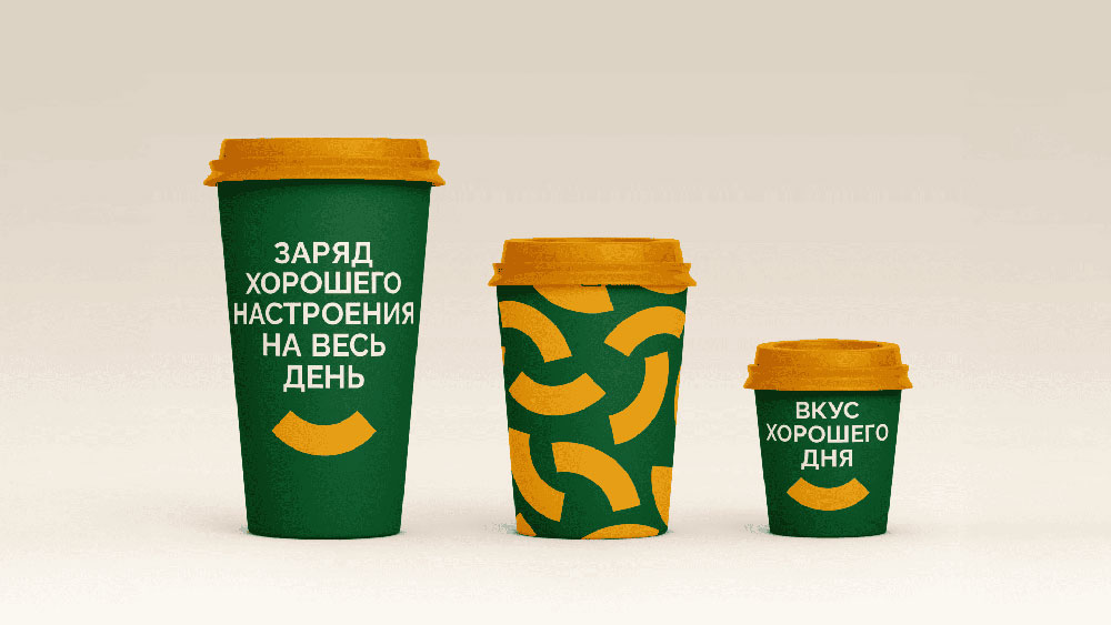 Помимо того, что основные цвета должны соответствовать новому позиционированию и помогать бренду выделяться среди конкурентов, а палитра должна включать расширенный набор дополнительных оттенков, которые будут гармонировать с основными, важно было предусмотреть монохромное цветовое решение. Чтобы бренд могу легко адаптироваться под фирменный стиль бренда или уже готовый интерьер помещения, на территории которого находится точка питания. Не всегда у бренда будет возможность использовать свой фирменный стиль в полной мере. В некоторых случаях нельзя размещать даже логотип. Поэтому предстояло разработать стиль-хамелеон, который в любом случае будет узнаваем.