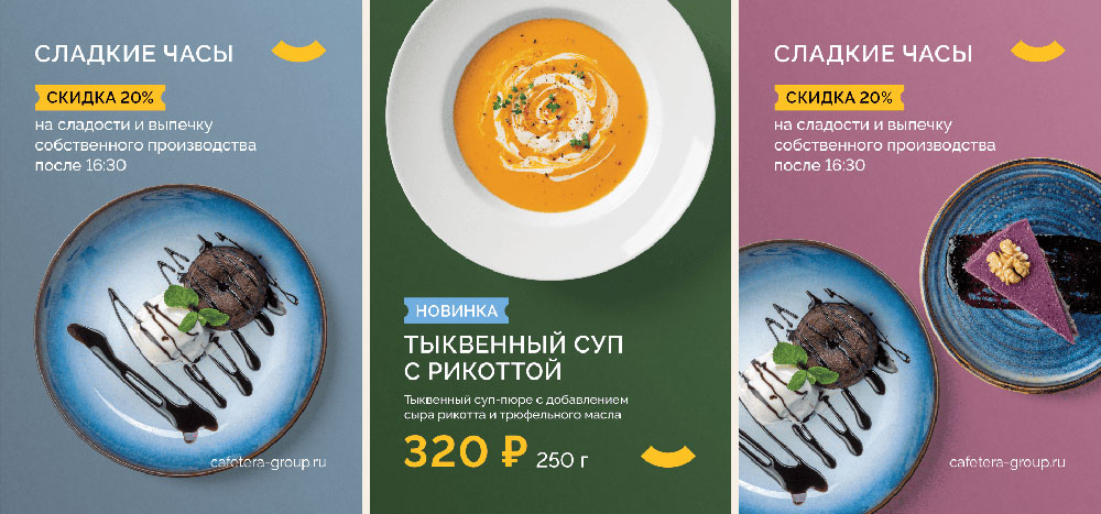 В новой концепции оба бренда, но особенно Cafetera, становились более открытыми и дружелюбными, современными и разнообразными, ориентированными на молодую аудиторию. Изменения коснулись даже названия бренда: основным решили сделать имя на кириллице — «Кафетера». А новое позиционирование бренда теперь звучит так: «еда и удовольствие».
