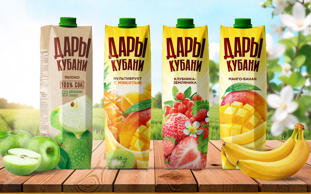 Getbrand разработал новый дизайн упаковки для соков "Дары Кубани"