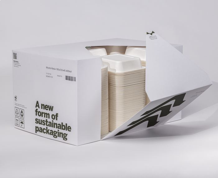 Muoto – это совершенно новый вид упаковки из формованного древесного волокна, подходящий для таких целей, как подносы для еды на вынос, коробки для ягод или упаковочные лотки.