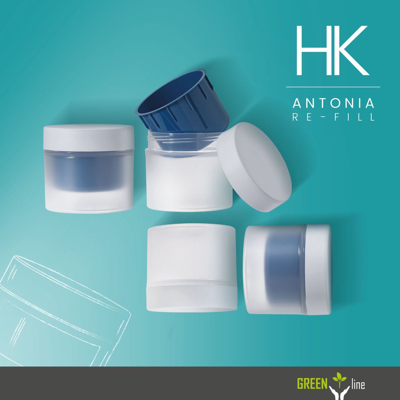Новинка в ассортименте HK Cosmetic Packaging – Antonia – обладает универсальностью. Ее можно использовать как одностенную баночку устойчивой формы объёмом 150 мл, которая обеспечивает много места для высококачественных ингредиентов. Баночка выпускается с матовой или глянцевой поверхностью. С соответствующей вставкой объёмом 100 мл ее также можно использовать как решение для повторного заполнения – рефил. Все компоненты банки изготовлены из мономатериала полипропилена, поэтому они на 100% подлежат вторичной переработке.