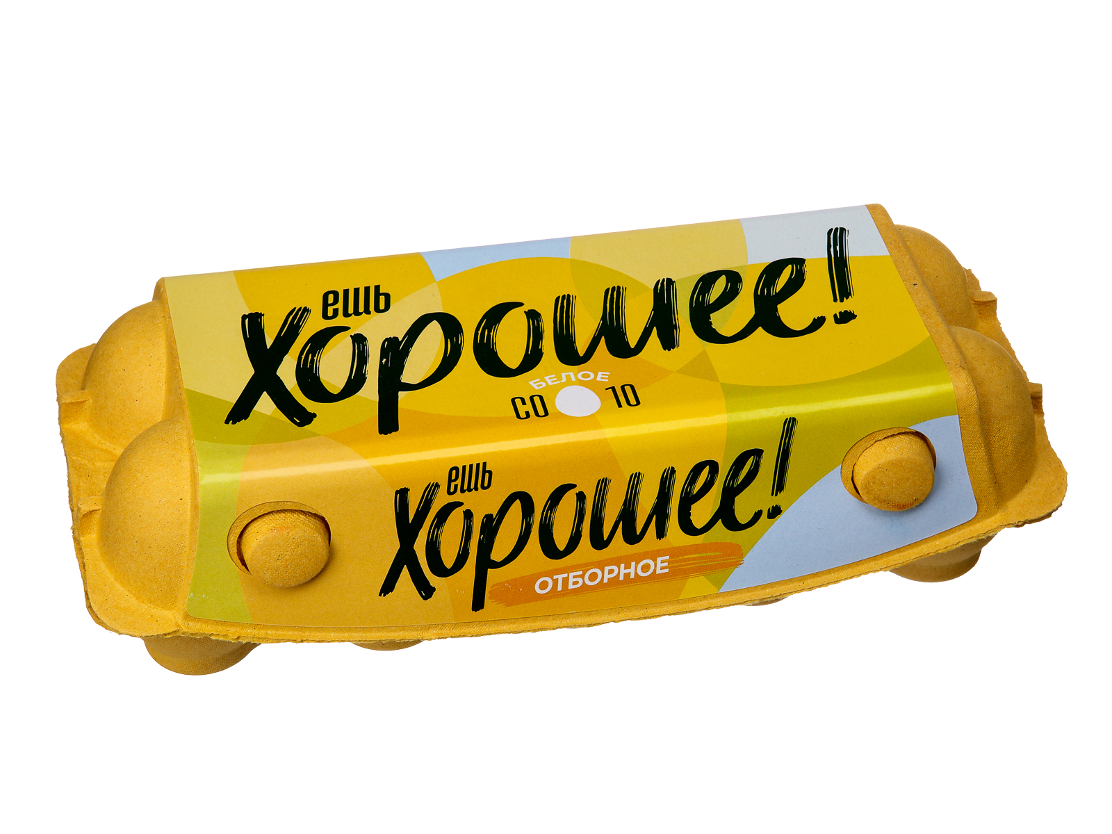 ТМ «Ешь хорошее» представлена в среднем ценовом сегменте. В линейке — яйцо белого цвета категорий СВ, С0, С1, С2 в упаковках по 10 и 20 штук.
