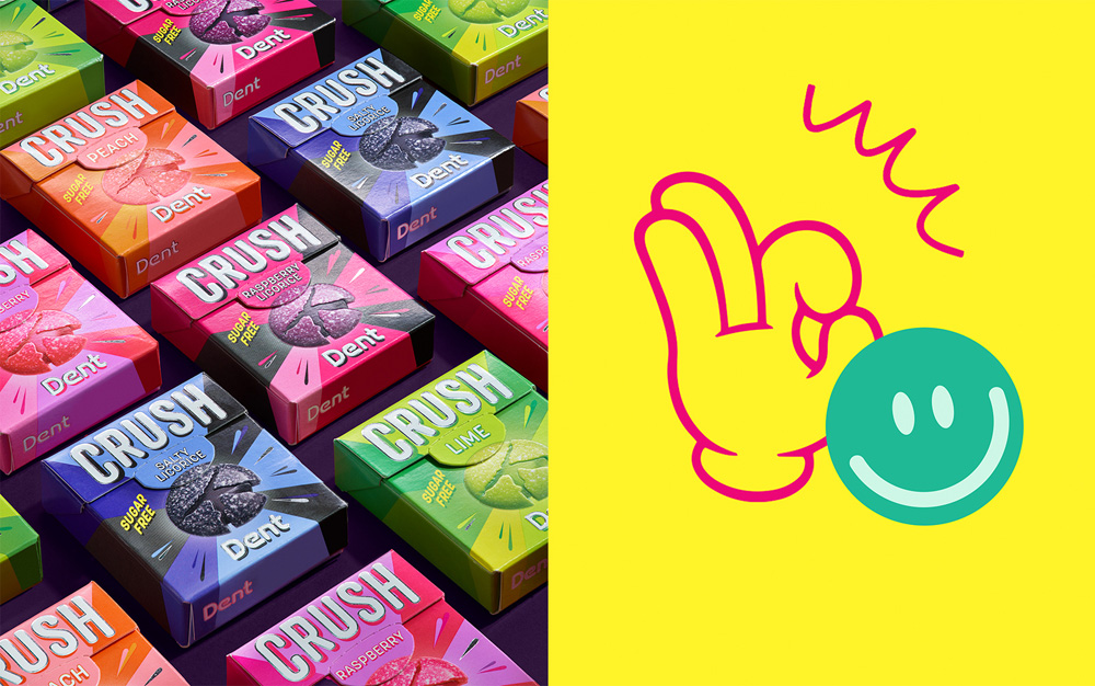 Норвежское агентство Keep Oslo представляет новый дизайн упаковки для леденцов без сахара Dent Crush. Дизайнеров вдохновило название бренда (Crush – давить, ломать) и они создали динамичный образ ломающейся конфеты.