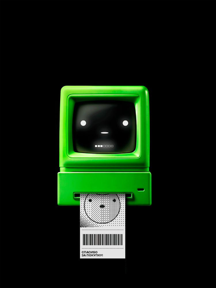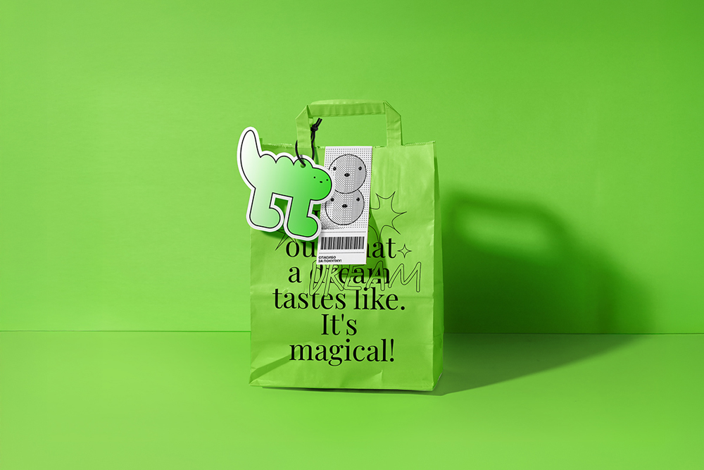 Chimi стал визуальным воплощением бренда. Маскот бренда не похож на своих аутентичных азиатских собратьев. Фигура Chimi состоит из мягких округлых форм, что подчёркивает беззаботное и воздушное настроение. С таким персонажем очень приятно ассоциировать себя. Качество и натуральность ингредиентов хотелось отразить в айдентике, но природный зелёный цвет не попадал в характер бренда. Потому основным цветом стал ярко-зелёный, вдохновлённый стилем brat — главным трендом 2024 года. Выбранный цвет помог создать визуальный код, понятный молодой аудитории.