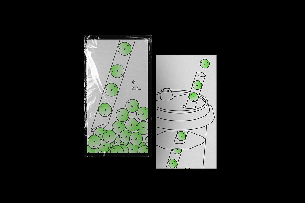Концепция, как и сам Chimi, ожила на носителях. В постерах и меню используется линейная графика с обилием круглых форм, отсылая к главному ингредиенту бабл-ти — тапиоке. У бренда появился стильный мерч и упаковка. Обечайки (держатели для стаканов) очень похожи на трендовые обвесы или «вторые сумки», популярные у зумеров. Такие аксессуары привлекают внимание и выделяются в городской палитре.
