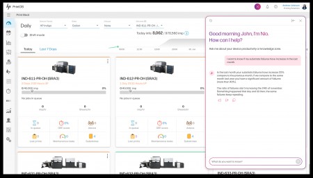 HP Nio в реальном времени предоставляет информацию и прогнозную аналитику для оптимизации производительности печати и производства. Чат-бот, работающий на базе PrintOS от HP, предоставляет компаниям интеллектуальные возможности на основе данных для максимального использования ресурсов печати, повышения производительности и открытия новых возможностей для роста.