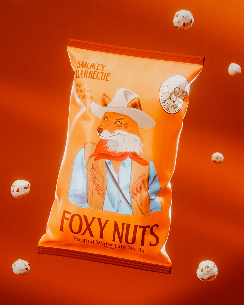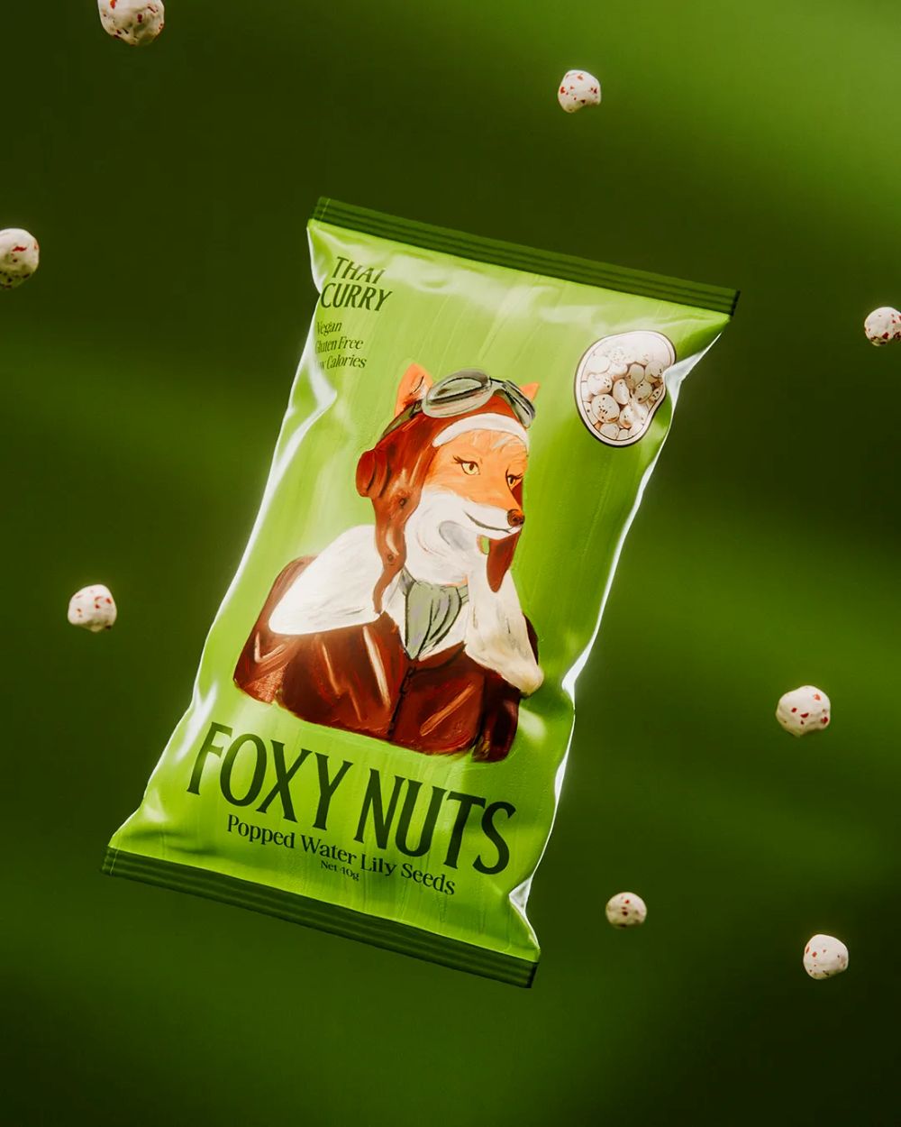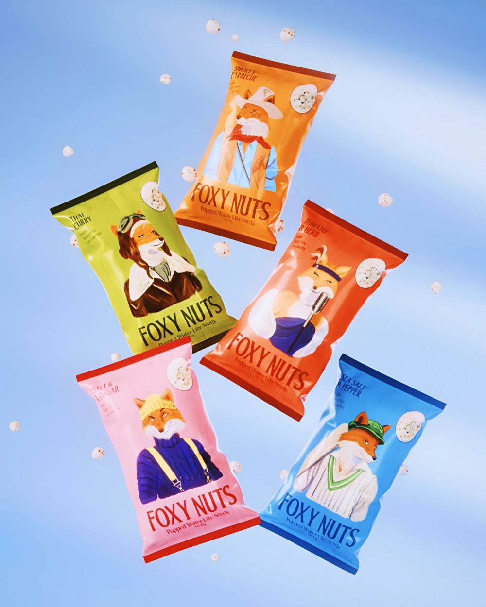Foxy Nuts - это воздушный снек, приготовленный из семян лотоса, которые по-другому называются махана или "лисьи орешки". Разработка бренда включила в себя дизайн и создание общей системы упаковки, которая, в итоге, сочетает очарование старинной литературы и привлекательность для современного покупателя.