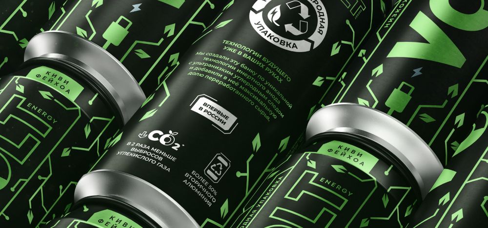 Перед дизайнерами стояла задача разработать уникальный дизайн упаковки для лимитированного вкуса VOLT Energy «Киви-фейхоа», который бы визуально подчеркивал технологичность продукта и его экологическую направленность.