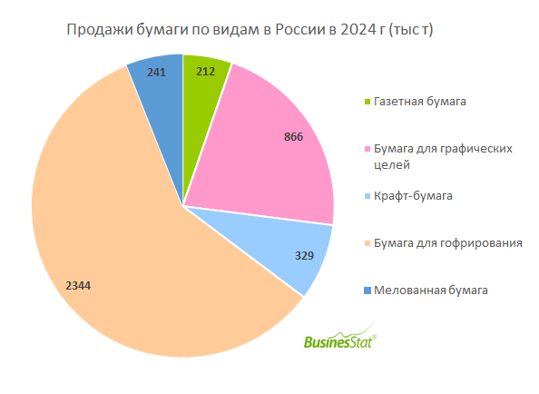 По данным , подготовленного BusinesStat в 2025 г, за 2020-2024 гг ее продажи в стране увеличились на 7%: с 4,1 до 4,3 млн т. Наибольшую долю в структуре продаж занимает бумага для гофрирования, используемая преимущественно при производстве гофрированного картона. Бумага для гофрирования и крафт-бумага являются основным растущим сегментами рынка.
