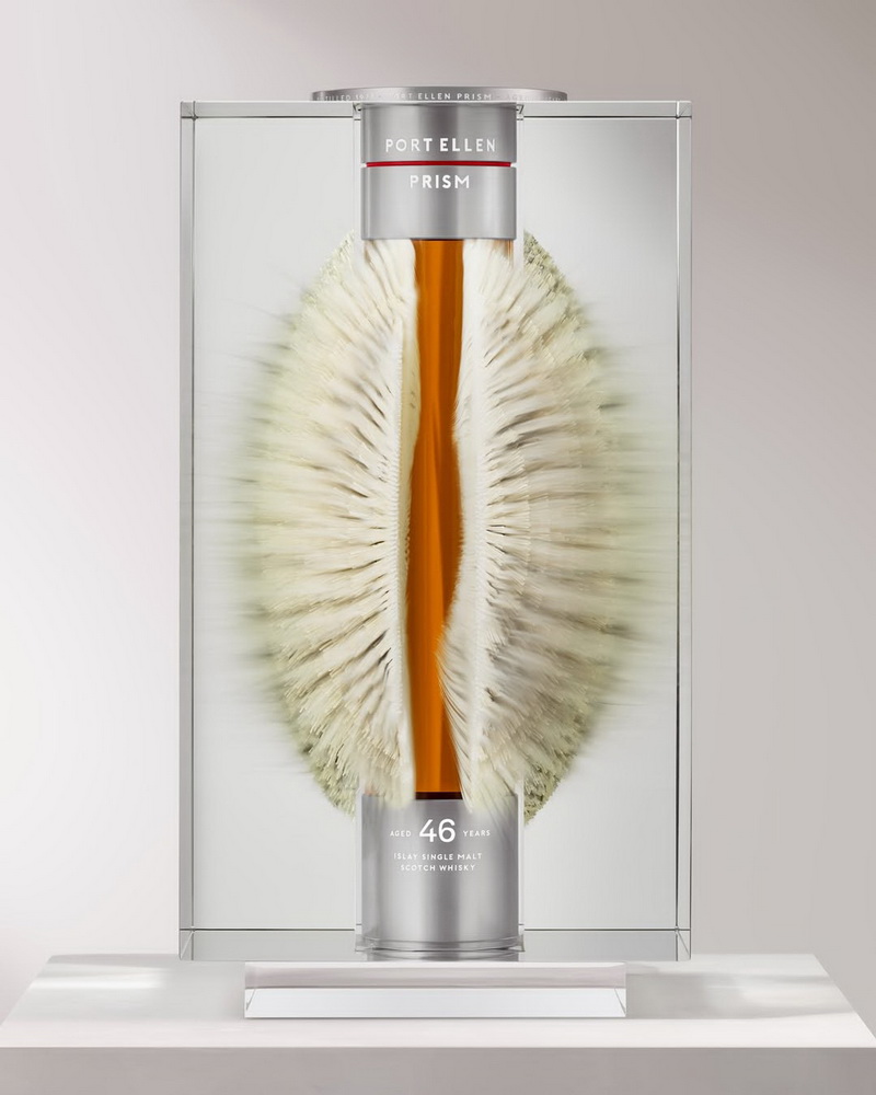 Виски Port Ellen Prism представлен в уникальной стеклянной бутылке объемом 1.5 литра. Она создана стеклодувами Radley и заключена в стеклянную скульптуру немецкого художника Уилфрида Гроотенса. Скульптура состоит из множества отдельных листов стекла, расписанных художником. Это создает трехмерное изображение, которое меняется при движении.
