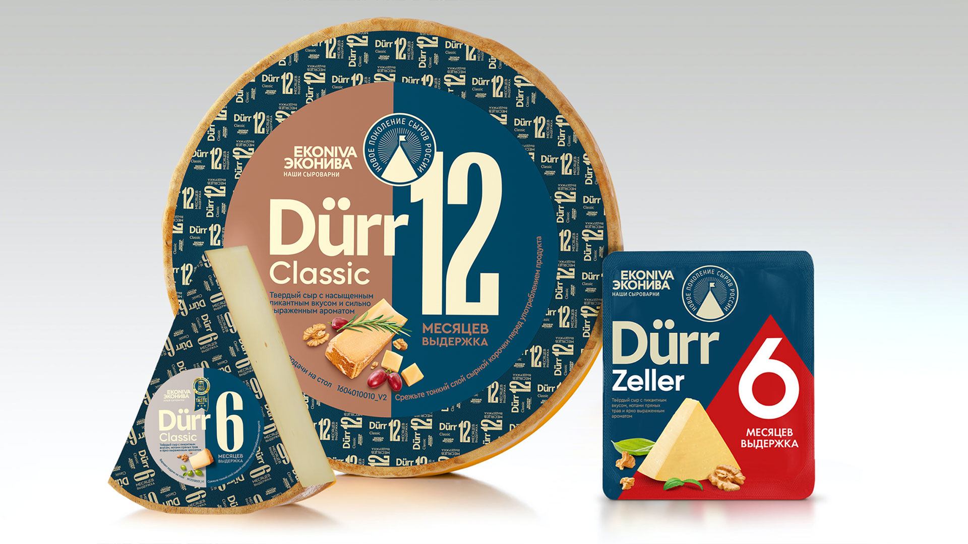 Коллекция сыров Dürr – это премиальные сыры российского происхождения. Все они производятся на заводе «ЭкоНивы» в Воронежской области из молока с собственных ферм группы. Их особенность в использовании созревательных культур на основе Brevibacterium linens. Именно они придают корочке оттенок от оранжевого до насыщенно-оранжевого, а продукту – интересные органолептические характеристики. У сыра с 6-месячным сроком выдержки сливочный вкус с нотами пряных трав и свежего белого хлеба. Аромат нежный и сливочный, с тонкими нотками грибов и топленого молока. Dürr Classic 12-месячной выдержки обладает сладковато-сливочным вкусом с легкими нотами ореха и свежего ржаного хлеба.
