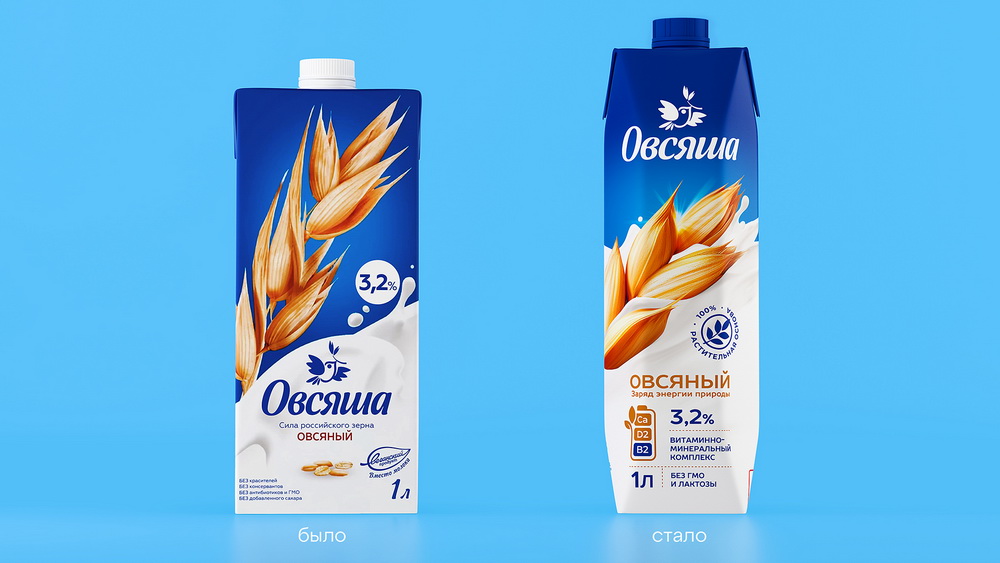 В агентстве DDVB обновили дизайн для альтернативного молока "Овсяша". Необходимо было сделать визуальный стиль более современным и привлекательным.