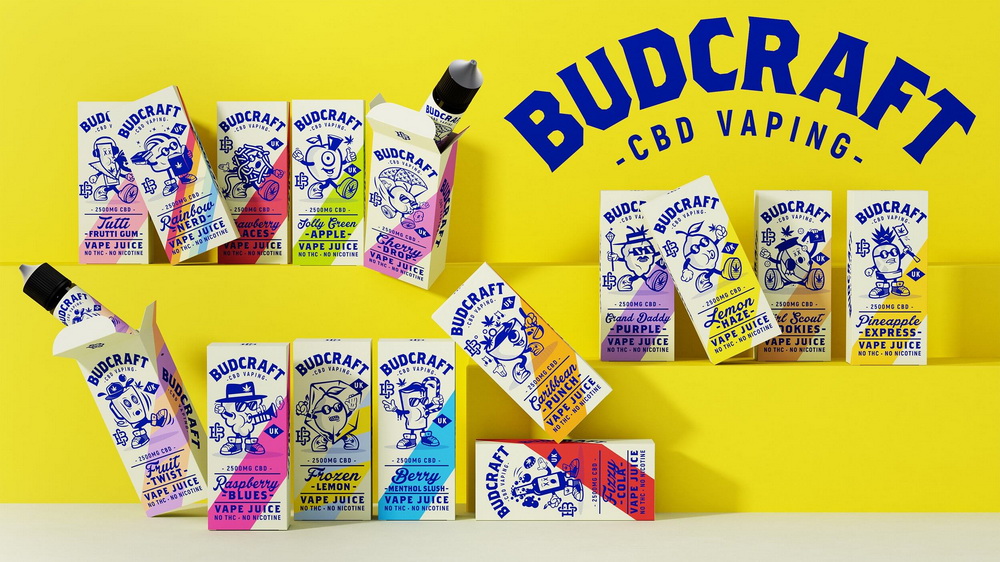 Британское агентство Design Happy представляет дизайн упаковки жидкости для вейпов Budcraft CBD. Для нового игрока на рынке дизайнеры постарались создать яркий и уникальный образ.