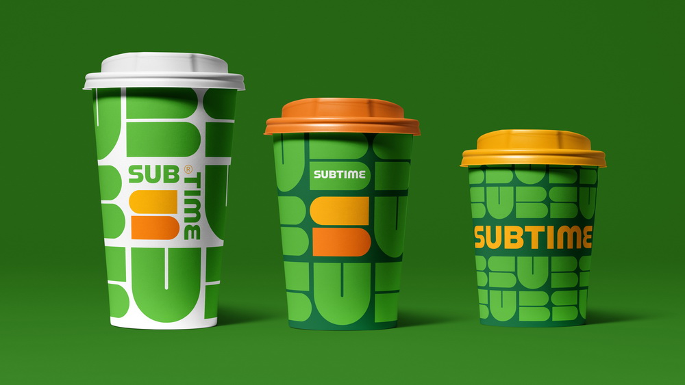 Новый визуальный стиль Subtime строится на узнаваемом и осмысленно переработанном образе. Логотип, буква S, обыгрывает форму двух сэндвичей, но не повторяет стиль Subway — это самостоятельный дизайн с вниманием к деталям.