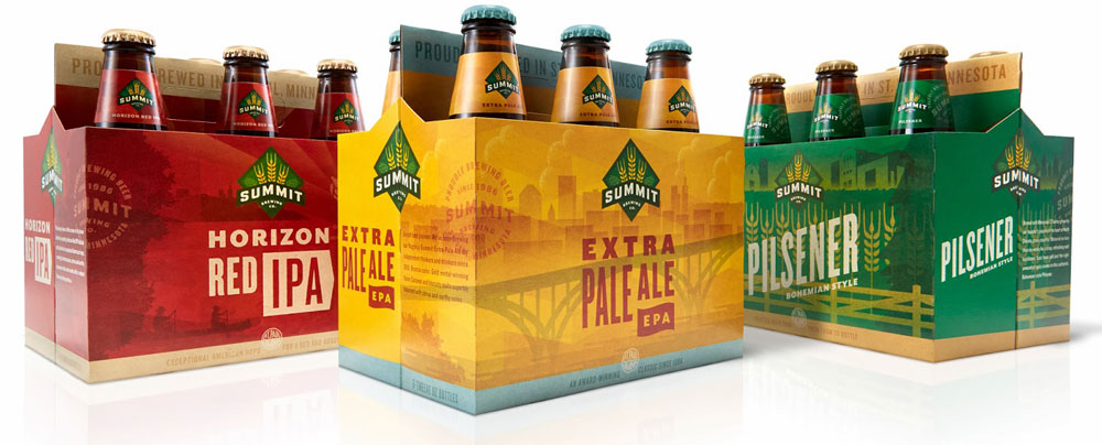 Американская пивоваренная компания Summit Brewing Company представила свою продукцию в новом дизайне упаковки, который разработали специалисты агентства Duffy & Partners.