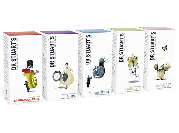 Британское агентство Pearlfisher разработало новую стратегию, айдентику и дизайн упаковки для чайного бренда Dr. Stuarts.