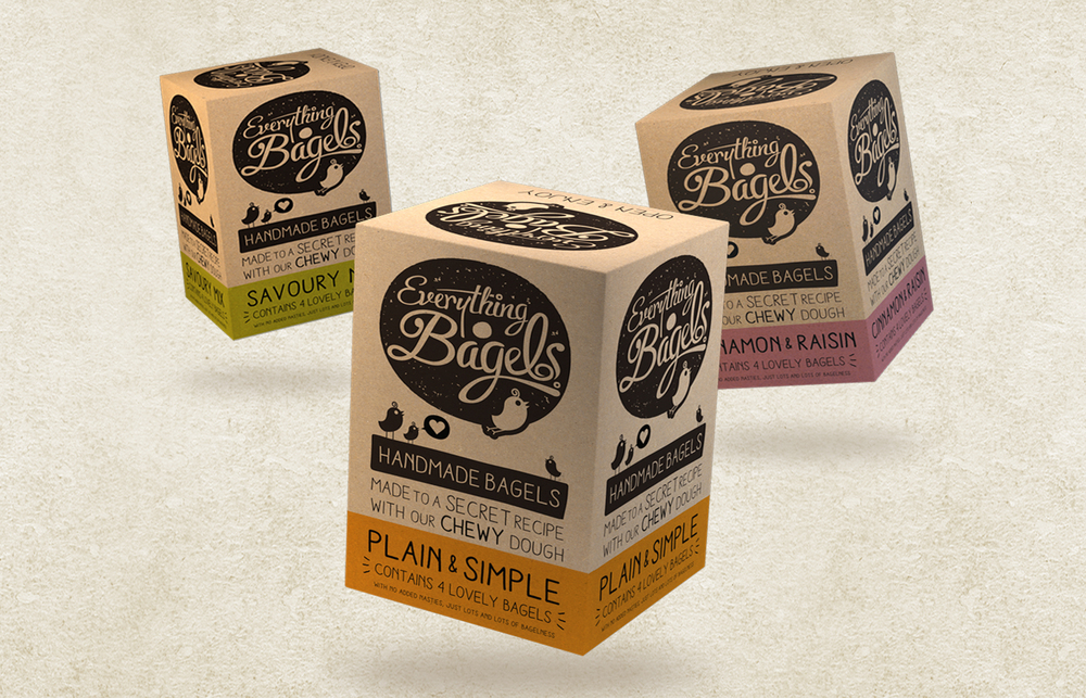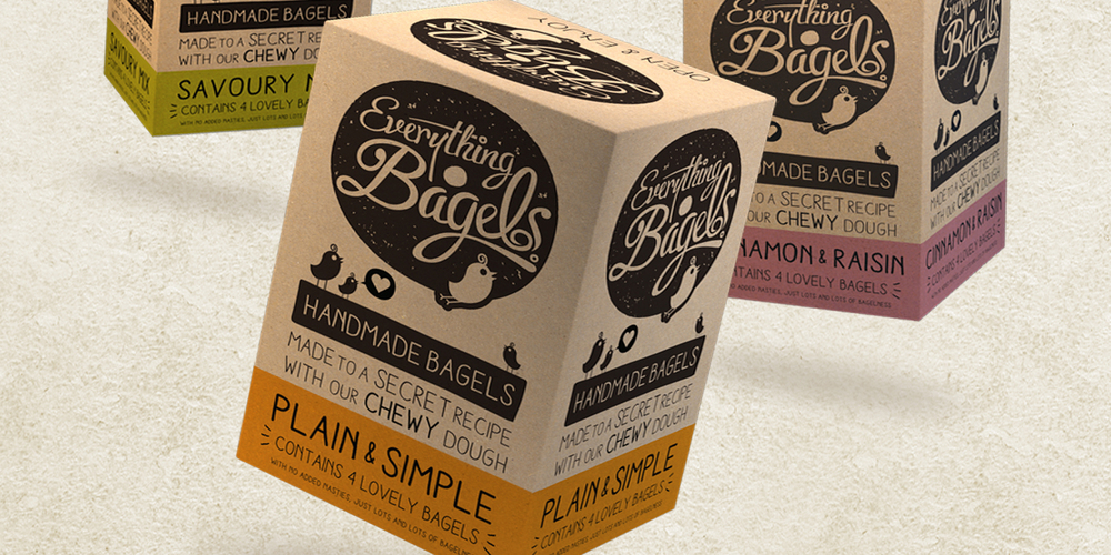 Бейглы давно прижились в США, но корни этого блюда еврейские. Задача нового дизайна заключалась в том, чтобы подчеркнуть кустарность производства, акцентировать внимание на неправильной форме бейглов.