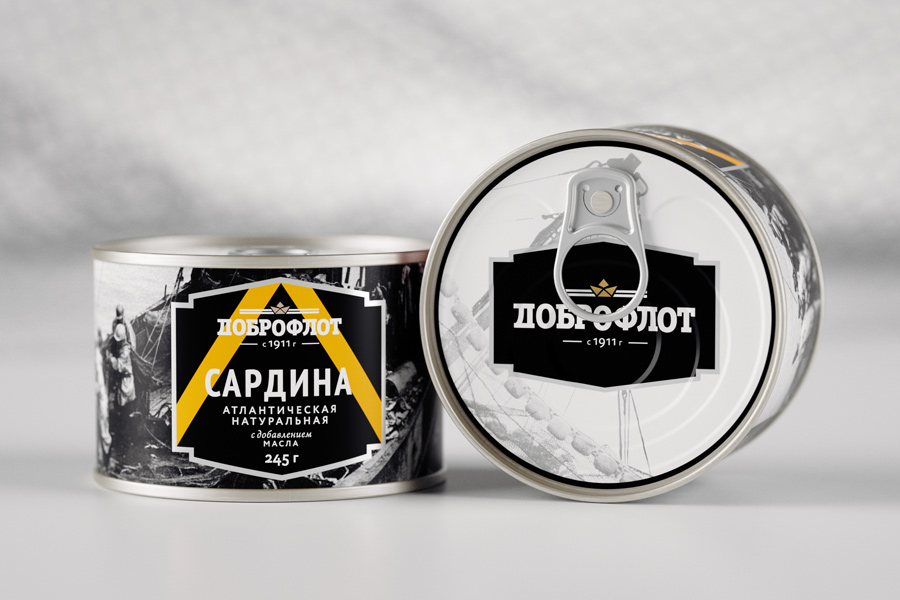 «Консервы «Доброфлота» изготавливаются на плавучем заводе «Всеволод Сибирцев», гигантском корабле, ставшим домом для настоящих «морских волков», не понаслышке знакомых с бурями и штормами. Это суровая работа для простых мужественных людей, чтящих традиции и говорящих на своем языке. Поэтому для дизайна упаковки консервов были выбраны простые геометрические формы, отсылающие к общепринятой системе морских сигнальных флагов. Цветные элементы изображены на фоне аутентичных черно-белых фото из истории компании, коллекция которых кропотливо собиралась по краеведческим музеям и личным архивам сотрудников. Знак «Сделано в море» делает очередной акцент на специфике производства и качестве продукта», - сообщили в Ohmybrand.