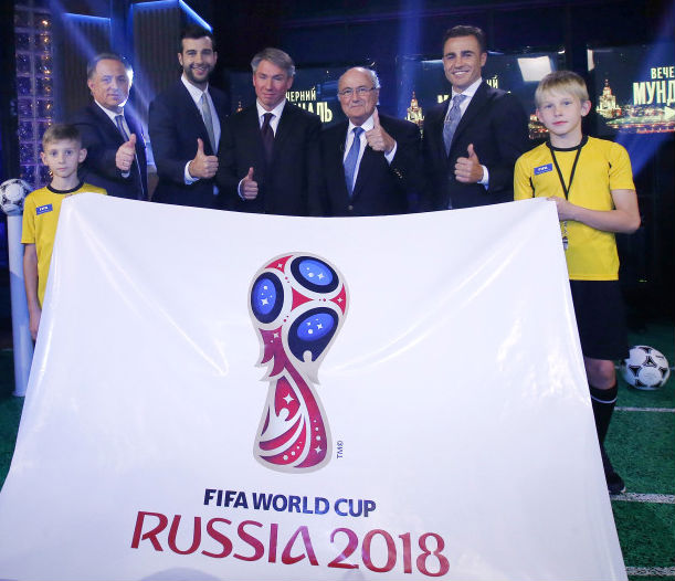 Вчера в передаче «Вечерний Ургант» на Первом канале президент Международной федерации футбольных ассоциаций (ФИФА) Йозеф Блаттер, генеральный секретарь организации Жером Вальке, министр спорта РФ Виталий Мутко и экс-капитан сборной Италии по футболу Фабио Канноваро представили официальную эмблему Чемпионата мира по футболу 2018 года (The Official Emblem of the 2018 FIFA World Cup Russia™).