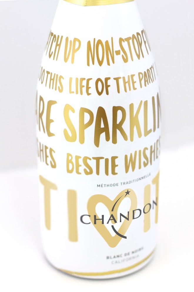 Акцент сделан на праздничной коммуникационной платформе бренда - #BestieWishes. Завершает образ горлышко, обернутое золотой фольгой, что делает силуэт чистым и современным.