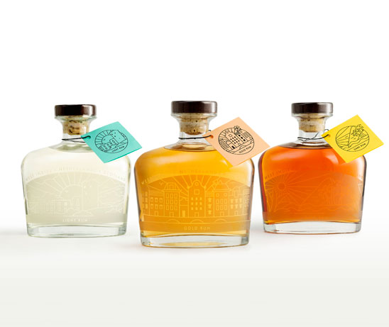 Чтобы отметить запуск нового проекта Rum Blender, агентство Front Page разработало дизайн упаковки для лимитированной партии рома. Напиток представлен в графинах с гравировкой. Над тремя иллюстрациями работали три дизайнера.