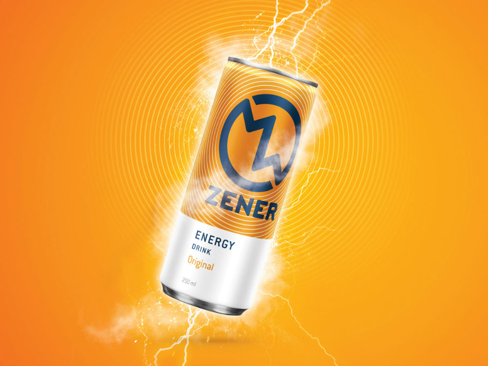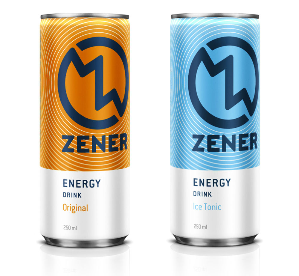 В основе названия ZENER — полупроводниковый диод, основной функцией которого является стабилизация напряжения. Для упаковки напитка была выбрана банка зауженной формы (Slim Line Can) объемом 0,25 л., благодаря приятному на ощупь, матовому покрытию банка удобно лежит в руке и не бликует при сложном освещении. Фирменный блок бренда — литера названия («Z») в повороте, напоминает биение пульса и отражает динамику и вращение колес гоночного автомобиля. Круговые линии расходятся от центра к боковым сторонам банки, и придают дизайну дополнительный объем и завершенность.