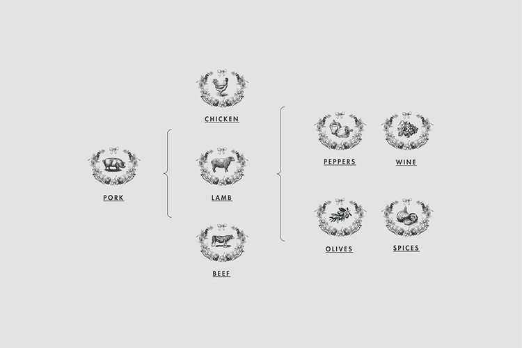 «Мы разработали систему айдентики, где различные элементы выражают уникальность бренда. Логотип отражает современный и устанавливающий тренд кулинарный концепт, а ряд штампов завершает и объединяет разные виды мяса и специй. Одновременно бренд производит впечатление классического и искреннего. Цветовая палитра включает теплые тона: коричневый, желтый, золотой. Они контрастируют с холодным голубым для баланса между свежестью и качеством», - рассказали в студии Anagrama.