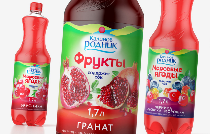 Яркий символ бренда — ягода калины — становится «визуальным якорем» для покупателя. За редизайном воды «Калинов родник» последовал редизайн линейки сладких напитков бренда. Ключевым элементом нового дизайна стало уникальное шрифтовое решение.