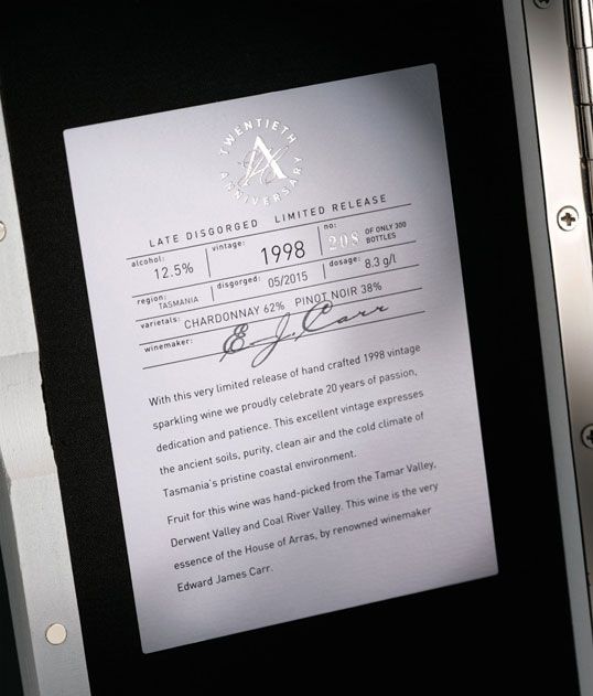 House of Arras – известный производитель эксклюзивных игристых вин в Австралии. В конце 2015 года компания отметила свое 20-летие. В честь события House of Arras выпустил лимитированную серию в 300 бутылок, оформленную знатоками дизайна алкогольной продукции Stranger & Stranger.