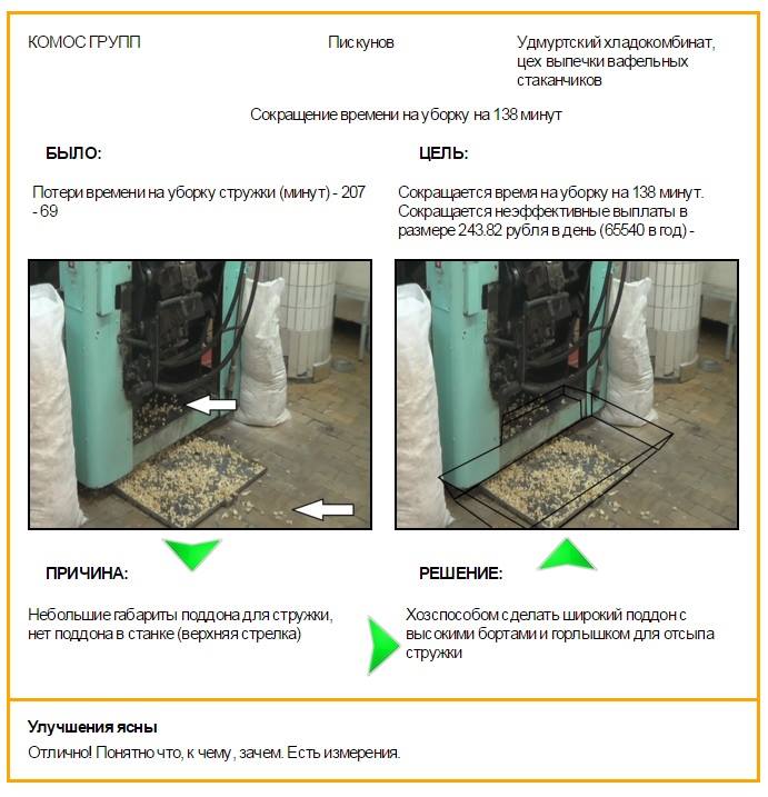 Для оформления кайдзенов, предложенных сотрудниками компании, была разработана специальная электронная форма. До 15 января консультант по бережливому производству Филипп Мурашов произведет экспертную оценку данных рационализаторских предложений по таким критериям как эффективность, инновационность и сокращение трудовых потерь.