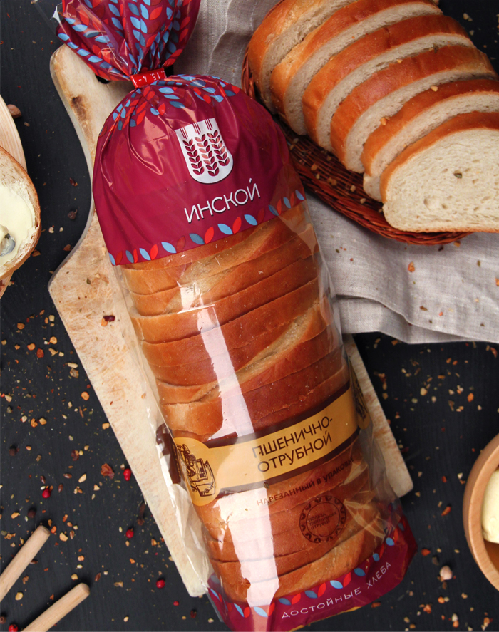 В рамках проекта создана концепцию и дизайн упаковки для двух категорий: хлеба и изделия к чаю, снеки. Ключевой элемент для всей продукции Инского - паттерн, созданный из колосков герба. Этот узор стал главным элементом, по которому легко узнать любимые хлеба и выпечку под брендом Инской.