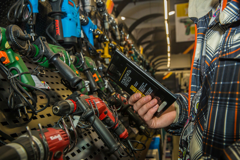 В магазине реализован уникальный для мирового ритейла формат. При помощи специальных планшетов, которыми оборудованы торговые залы, покупатель может приобрести крупногабаритный товар. Устройство считывает данные с ценников и отражает информацию на экране. Сделав выбор, клиент оплачивает покупку на кассе и получает товар на месте или с доставкой. По заказу компании для планшетов разработано собственное программное обеспечение.