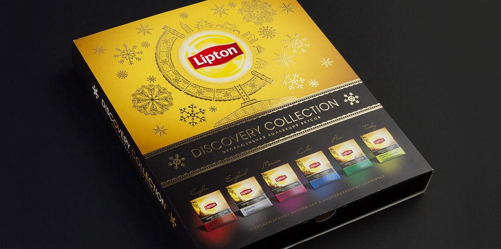 Агентство Mildberry разработало концепцию и дизайн упаковки и праздничного cливера для Lipton Discovery Collection, представив набор как идеальный подарок.