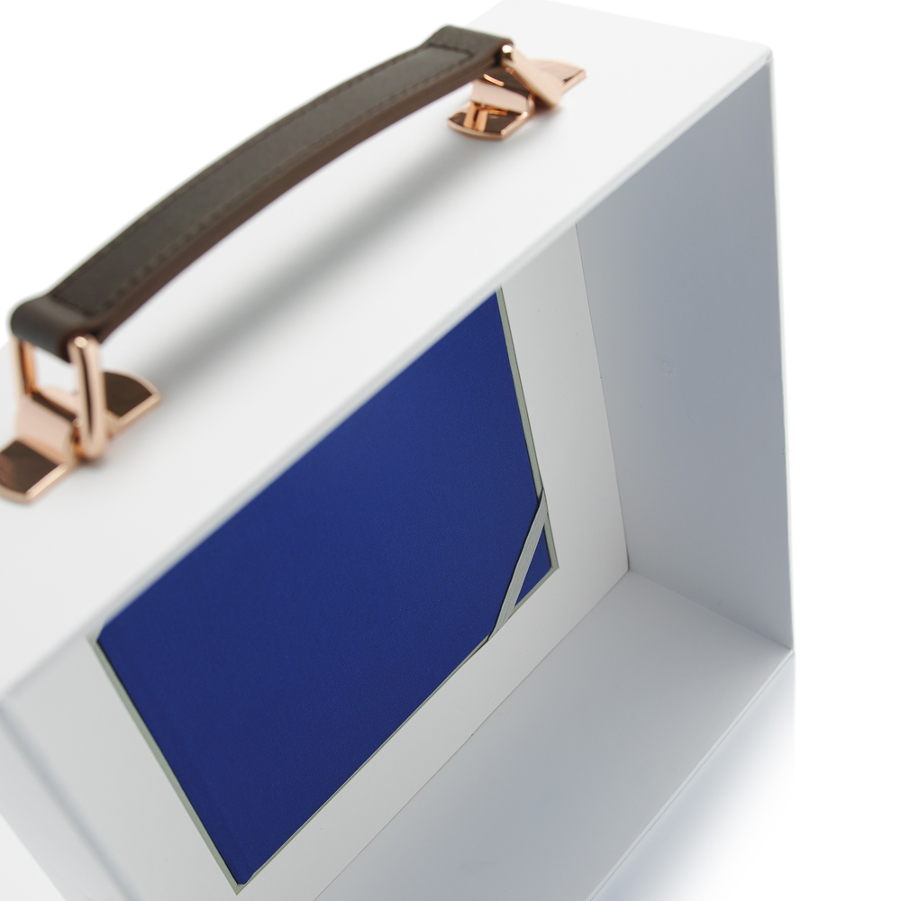 Подарочное издание вышло ограниченным тиражом всего в 30 упаковок. Футляр сделан из жесткого картона толщиной 3 мм. Белое бумажное покрытие премиального качества с микро-перфорацией в качестве паттерна дает ощущение элегантности и минимализма. Ручка сделана из настоящей кожи, металлические крепежи медного цвета придают гламурное настроение.