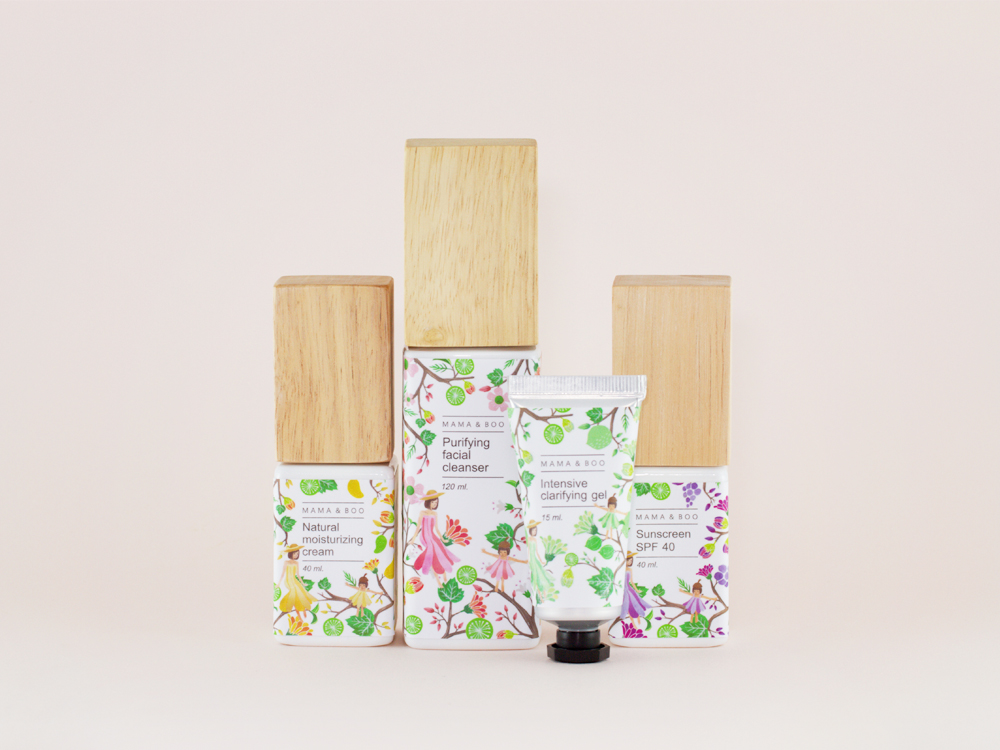 Тайская студия Thinkpanther Design Studio разработала бренд и дизайн упаковки косметических средств для будущих мам. В линейку продукции Mama & Boo входят очищающие средства, крема, в том числе защищающие от солнца.