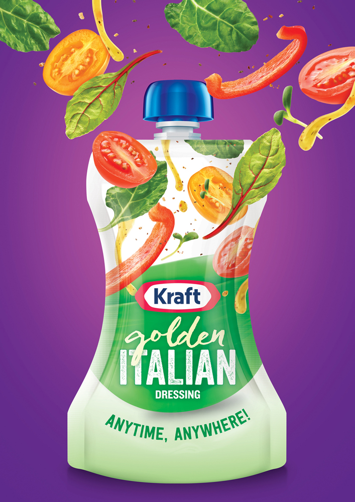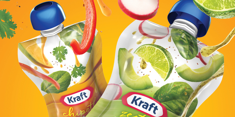В американском офисе агентства Bulletproof разработали дизайн упаковки для салатных заправок Kraft Salad Dressings. Компания The Kraft Heinz Company решила представить свои заправки в новой упаковке – удобных небольших пакетах. Задача дизайнеров заключалась в том, чтобы выгодно представить заправки в новом формате упаковки.