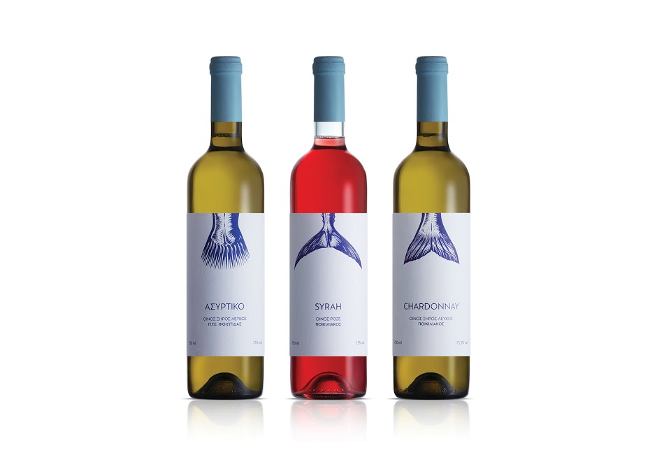 Логотипом стал образ фонаря “pyrofani”, который используется на рыбацких лодках для привлечения рыбы. В геометрии «фонаря» также угадывается изображение рыбы. В линейку вошли три вида вин: Ассиртико, Шираз и Шардоне. Их представляют тунец, влахоз и морской карась.