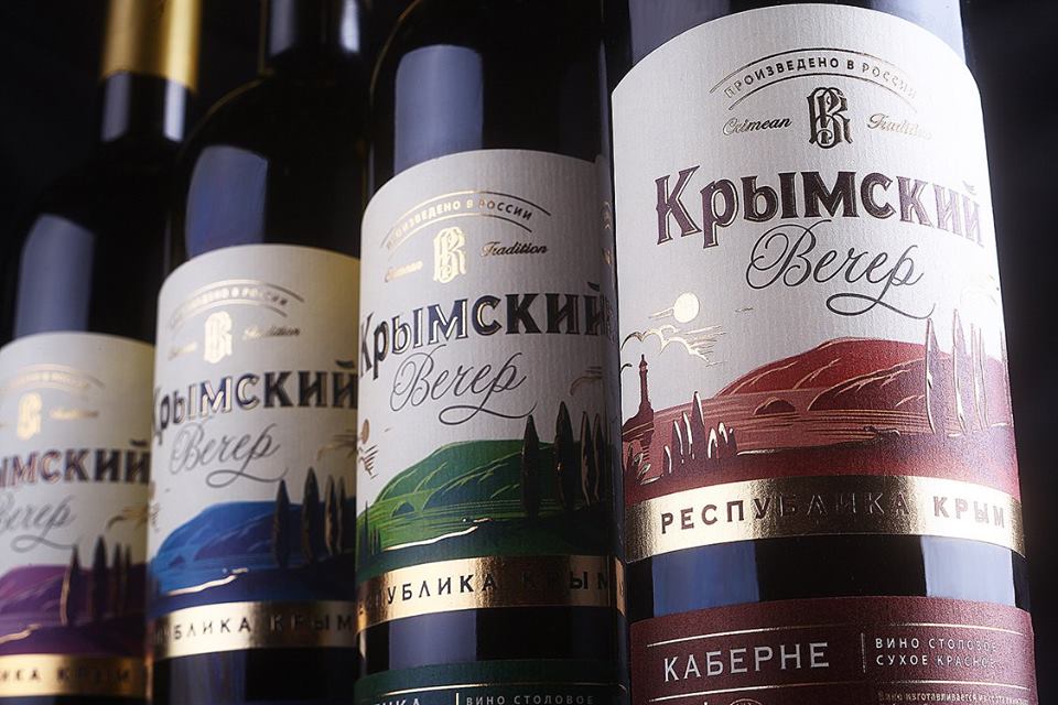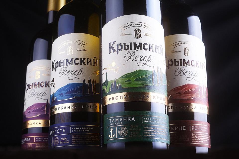 Студия 43'oz разработала дизайн торговой марки "Крымский вечер" и дизайн этикеток для серии ординарных столовых вин компании "Русский Винодельческий Дом".