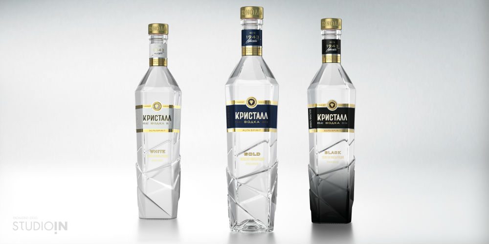 Брендинговая студия STUDIOIN разработала для казахского производителя дизайн упаковки водки «Кристалл».