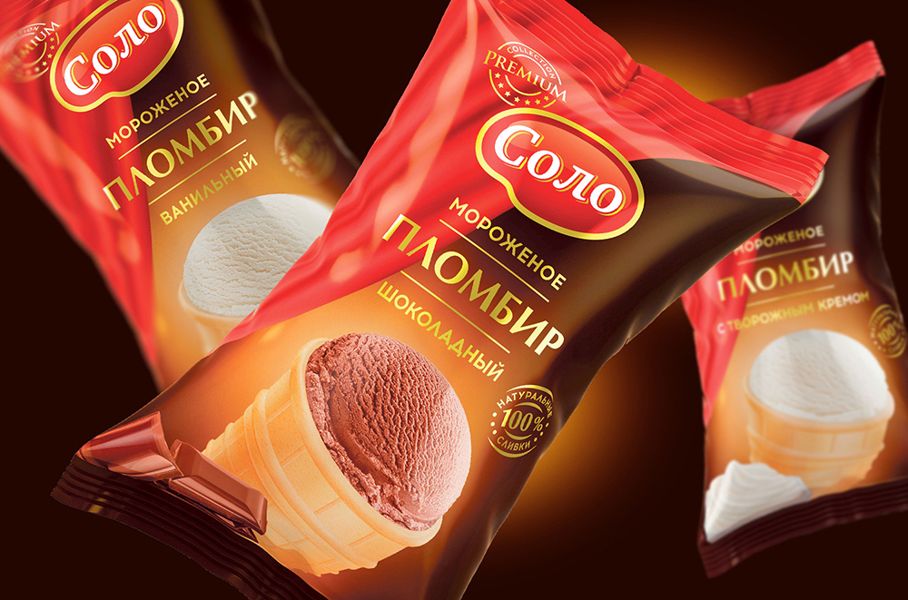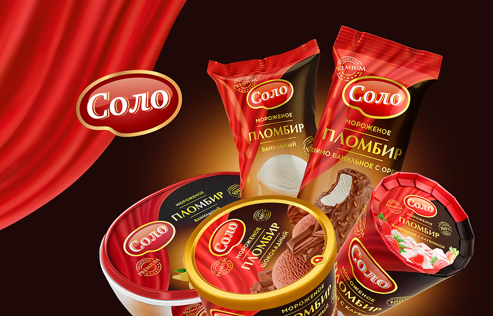 Калининградская компания ОАО «Молоко» представила новую торговую марку «Соло» — мороженое и глазированные сырки по традиционной рецептуре. Дизайн упаковки разработало брендинговое агентство AVC (Беларусь).