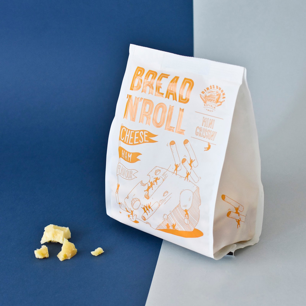 Мини-гриссини от литовского производителя Biržų duona упаковали в местной студии PRIM PRIM studio. Продукт ориентирован на молодую аудиторию со средним доходом.