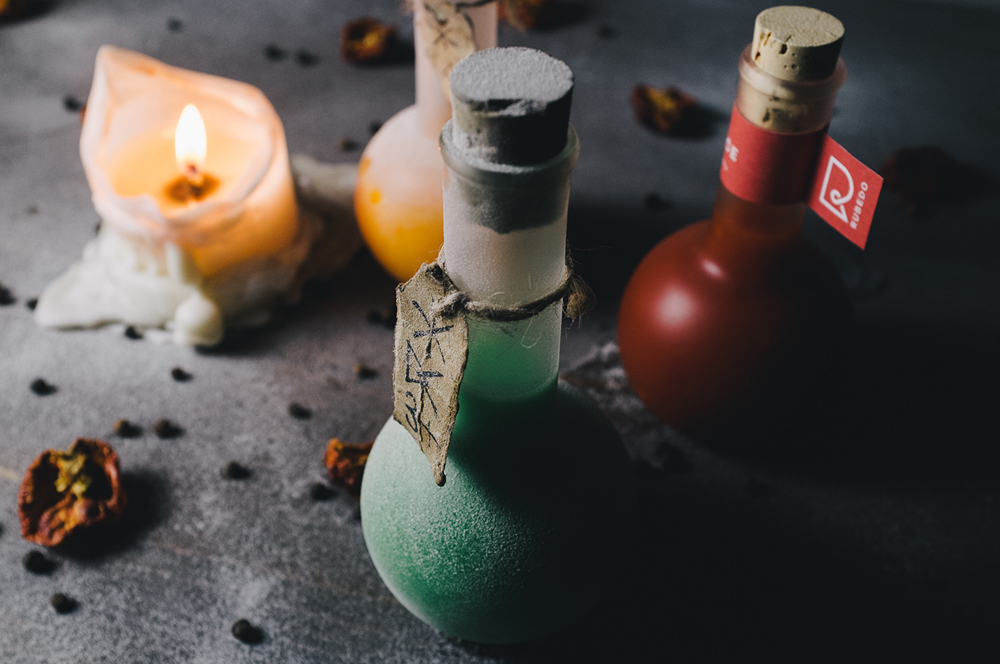Румынский дизайнер Stefan Andries представил концепт упаковки для жгучих соусов Rubedo. Алхимия лежит в основе его идеи.