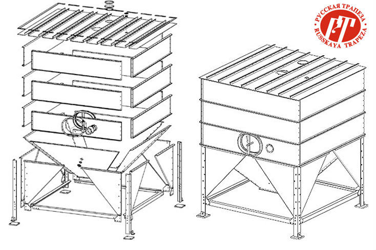 В марте инженеры холдинга «Русская Трапеза» завершили разработку сборного силоса для хранения сыпучего сырья. Модульная конструкция позволяет устанавливать силоса большого объёмы внутри производственных помещений, где отсутствуют большие технологические проёмы для заноса крупногабаритного оборудования.