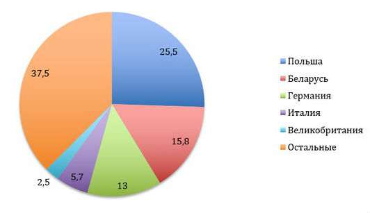 1. ТОП-5 стран-поставщиков шоколадных кондитерских изделий в Россию в июне 2017 года, %
