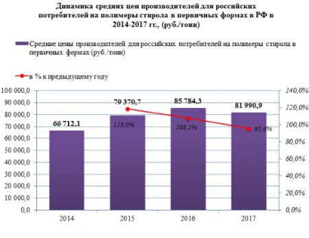 Однако производство полимеров стирола тесно связано с развитием химической промышленности в стране. Химическая промышленность в 2017 году характеризуется стабильным ростом. Это объясняется тем, что в данном виде обрабатывающей промышленности сохраняется положительное настроение, которое обусловлено импортозамещением, в результате изменения экономической ситуации. Такая ситуация вселяет определённые надежды на рост и развитие рынка полистирола.