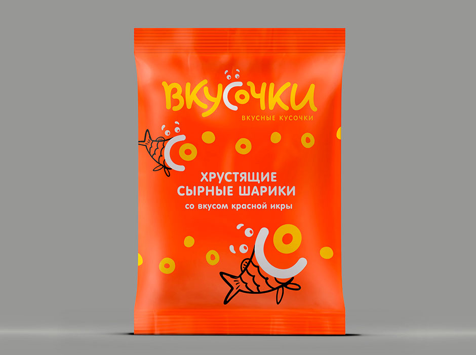 Снеки под пиво — понятие широкое. Чтобы продавать под одним брендом и рыбу, и мясо, и орехи, и сыр, и чипсы с гренками, и еще что-нибудь новенькое, бренду нужно настолько же широкое название. В студии "Паприка брендинг" придумали такое слово, превратив словосочетание «вкусные кусочки» в торговый неологизм.