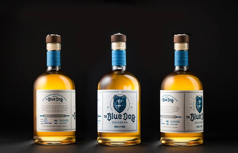 The Blue Dog - новый проект от Дмитрия Панфилова. Он разработал дизайн упаковки для кальвадоса, рецептура которого создал Геннадий Кузнецов.